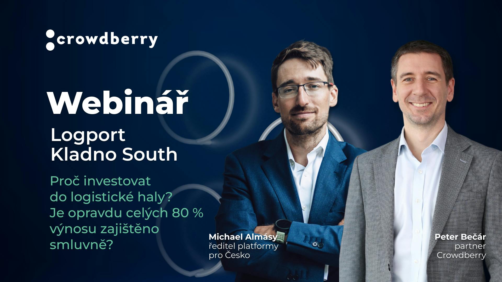 Webinářem vás provede Peter Bečár - partner Crowdberry, který byl přes 10 let členem výkonného managementu přední developerské společnosti P3 Logistic Parks, a Michael Almásy - investiční ředitel platformy Crowdberry pro Česko.