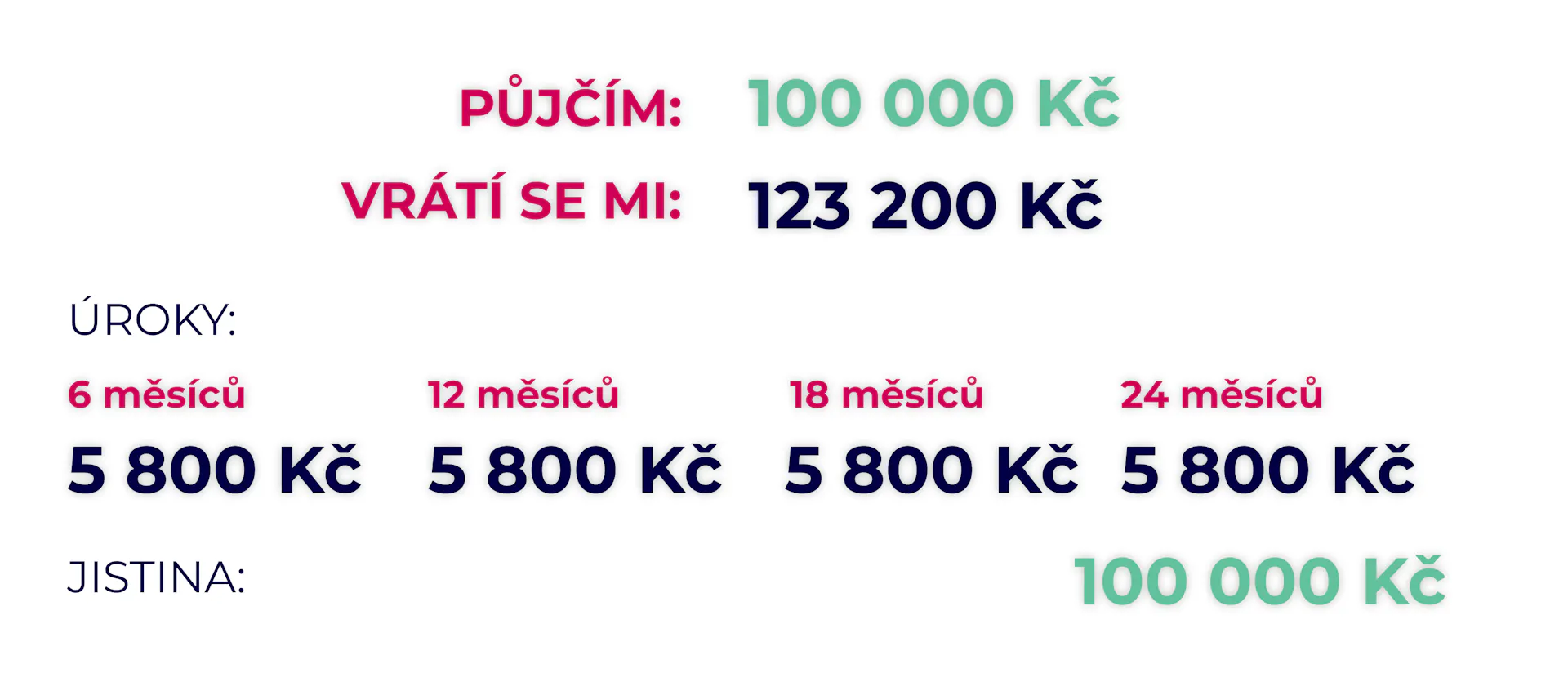 - Sankční úrok: v případě prodlení s úrokovou platbou 1 % měsíčně (12 % p. a.)