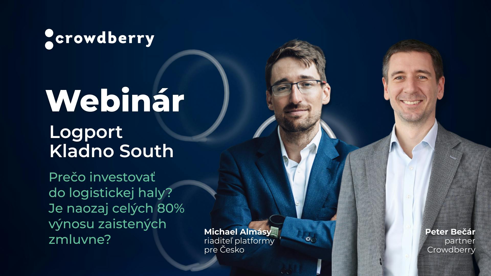 Webinárom vás prevedie Peter Bečár – partner Crowdberry, ktorý bol cez 10 rokov členom výkonného manažmentu poprednej developerskej spoločnosti P3 Logistic Parks, a Michael Almásy – investičný riaditeľ platformy Crowdberry pre Česko.