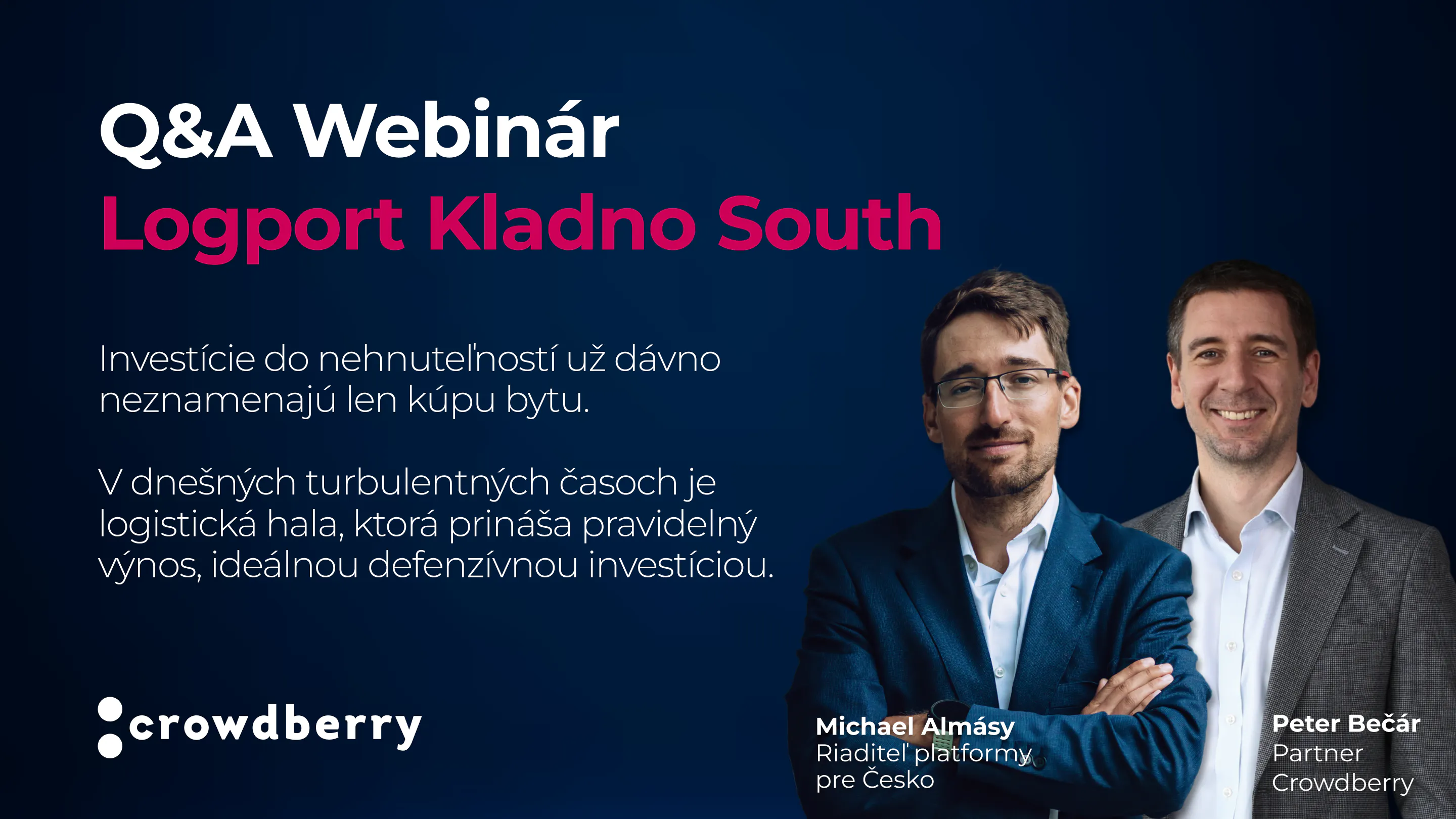 Pridajte sa k nám na Q&A webinár, ktorým vás prevedie Peter Bečár, partner spoločnosti Crowdberry, a Michael Almásy, riaditeľ platformy Crowdberry pre Česko.
